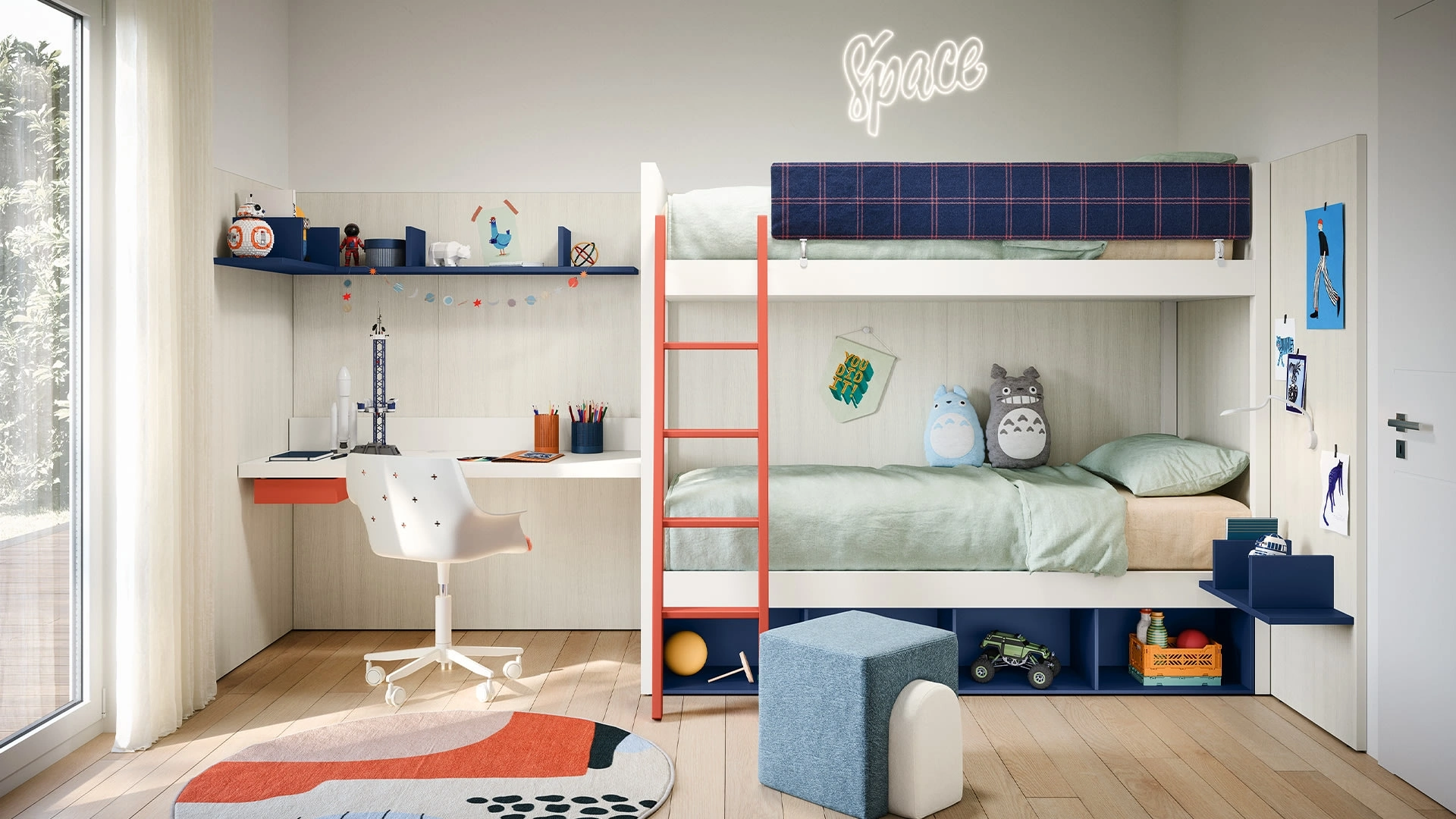 Con questa cameretta Castello Camelot Nidi, tra le soluzioni con letti a castello, potrai ammobiliare stanze moderne per bambini.