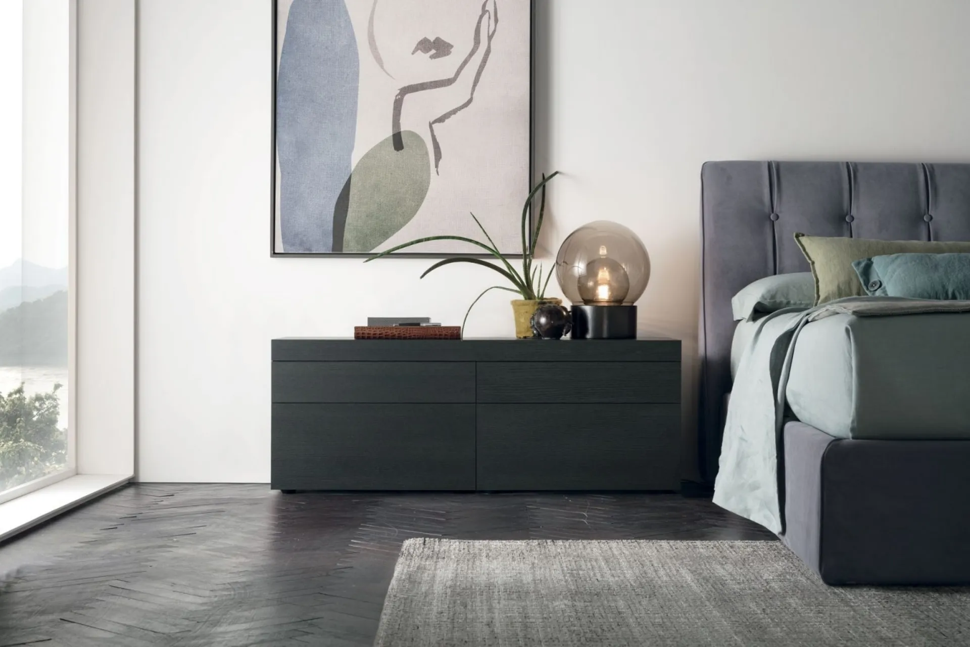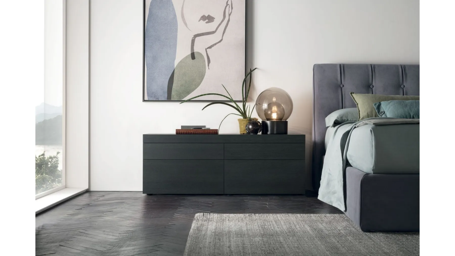 Un ricco catalogo di cassettiere Tomasella: i comodini moderni in laccato opaco, come Argo Gruppo Notte, sono tra le proposte più esclusive.