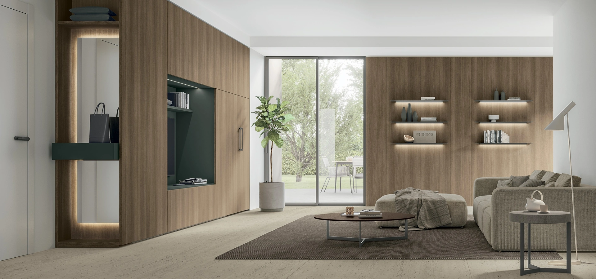 Se vuoi completare un living pratico e dinamico dalle linee moderne, ti offriamo la parete attrezzata Logica Plus UNIT 02 Tomasella.