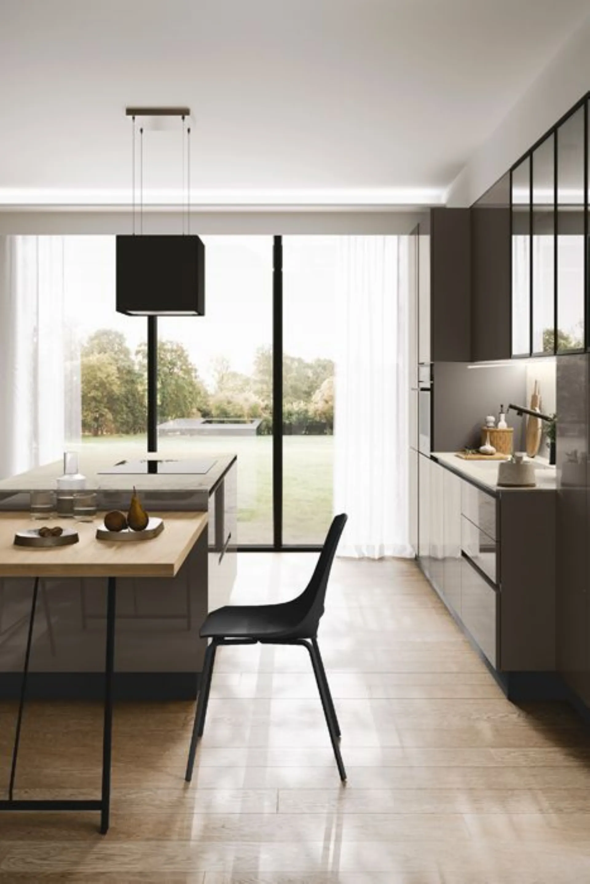 La massima funzionalità per una cucina attenta al modo di vivere contemporaneo dove gli spazi sono mutevoli e fluidi. Un ambiente da vivere a fondo e nella massima comodità, ogni funzione determina un volume a se’ stante. Una cucina in cui il necessario è condensato in un unico spazio dove è possibile svolgere tutte le funzioni nella massima ergonomia.